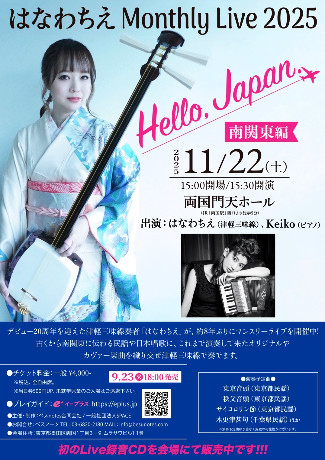 デビュー20周年を迎えた津軽三味線奏者のはなわちえが送る